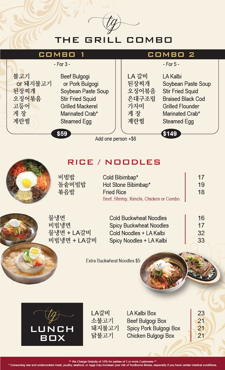 Welcome to The Grill - Lakewood, a gem of Korean BBQ located in Lakewood, WA. At this vibrant eatery, you can explore an enticing menu filled with flavors that celebrate traditional Korean cuisine. The highlights include options like Grilled Cutlass Fish and Grilled Mackerel, which are expertly prepared to capture the essence of coastal Korean fare. For meat lovers, the Beef Bulgogi and LA Kalbi deliver rich, mouthwatering tastes that leave an imprint on your palate.
